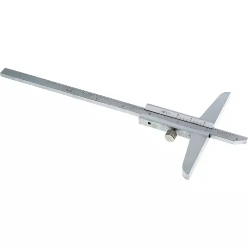 For those that prefer to read fractional inches, this carbon steel Vernier Depth Gauge with screw lock has a resolution of 1/128". Range is 0 - 6" and the base measures 3".