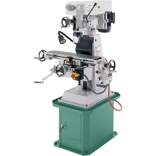 These are beautifully produced, accurate machines that are far more than just a step above a mill/drill. They feature a tilting head, a knee, one shot lubrication, satin finished dials, 9 speeds and so much more. Also features a power feeder for smoother finishes and easy operation.