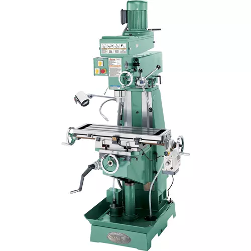 This is an extraordinary value for a vertical milling machine in this size range. It comes packed with features and capacities found on other mills costing thousands more. Start with a powerful 2 horsepower motor, coolant system and power feed on the longitudinal axis. Then add a swivelling table, an amazing 15" capacity under the spindle and a 44" maximum swing! With the heavy castings and precision ground ways, you can tackle just about any job with confidence. Includes a set of R-8 collets, milling vise and drill chuck with arbor.