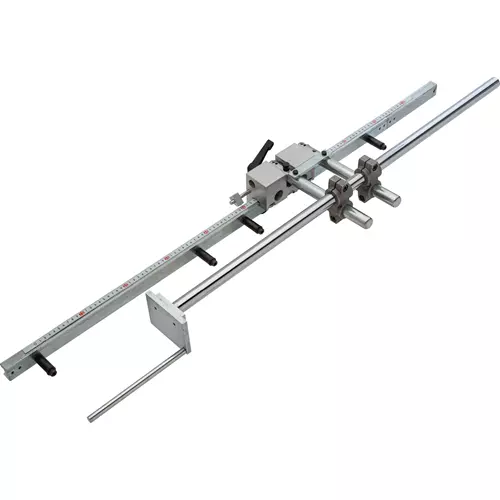 Durable measuring bar/scale and infinitely adjustable stops allow for fast, repetitive, accurate cuts.