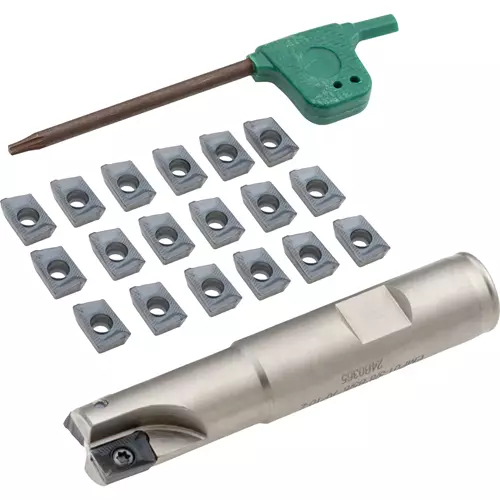 This 20-piece indexable end mill set is engineered for high-feed, face, and shoulder milling, providing a productive and economical solution for your CNC or manual mill.
