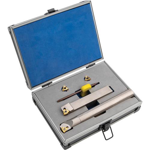 This professional-grade set makes threading operations faster and more precise. With 3/4" shank holders, titanium aluminum nitride-coated (TiAlN) indexable inserts, and durable tool bodies, it's built for rigidity, accuracy, and repeatable results—ideal for demanding lathe work where clean thread profiles and minimal setup time matter most. This set provides everything you need to accurately cut common thread forms on both the outer diameter (OD) and inner diameter (ID) of a workpiece.