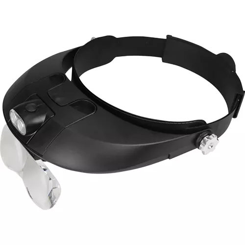 2 LED illuminating magnifier Detachable LED light source with 11 levels of magnification Comfortable to wear and easily adjustable Light box detaches and provides a free-standing light source Convenient markings on lenses show magnification levels Magnification variations: 1X, 1.5X, 2X, 2.5X, 3.5X )double lens 3X, 4X, 4.5X, 5.5X, 6X Includes 3 AAA batteries