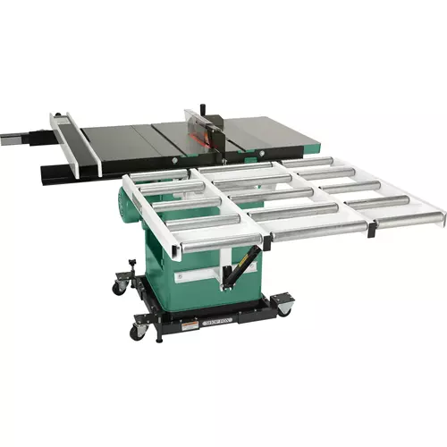 The G1317 37" Outfeed Roller System is unique in that it folds down easily without tools and snaps up in place quickly when needed.