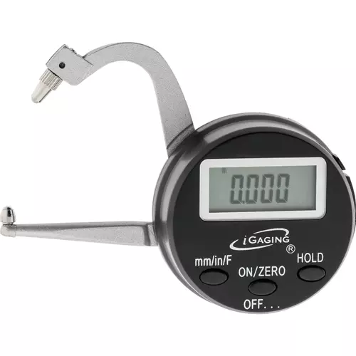 This Digital Thickness Gauge features a large LCD display, spring-loaded travel, alloy jaws and chrome finish. Reads inch, metric and fractional (1/64").
