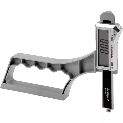 An electronic Mini Depth Gauge and Digital Indicator all in one with 2-way measuring and spring load. This instrument provides readings in your preference of inch, metric, or fraction and is can be used to check the depth of a slot, dovetail or hole in your work. Easy to use and easy to carry, this is a great quick way to make sure your measurements line up!