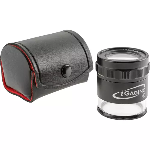 This super high quality scale loupe from iGaging is illuminated and distortion free. The illumination is provided by 8 super bright LEDs and the loupe comes with a removable scale for measuring radii and angle length. 1" in diameter and includes a protective leather case, as well as a 4x AG9 battery.