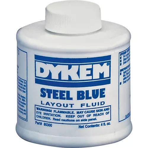 Machine shop operators depend on Dykem® Steel Blue Layout Fluids to scribe sharp, clear, precise lines. When applied, our layout fluids provide a uniform deep blue color that prevents glare and dries in minutes. All Dykem® Layout Fluids create an extremely thin film which adds practically no thickness to the work piece and remains flexible without cracking and chipping. This layout fluid is toluene free and dries in minutes. 4 oz. bottle.