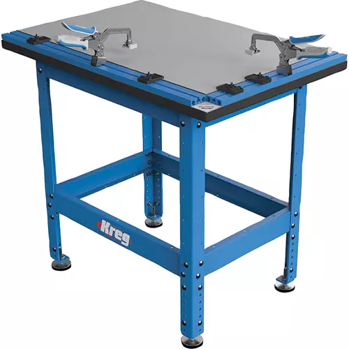 The Kreg Clamp Table combines several of our Clamp System Components into one amazing clamping station. Once secured to the adjustable heavy-gauge steel stand, the Kreg Clamp Table provides the ultimate clamping solution for Kreg Joinery and almost any other woodworking task. Whether you are joining, sawing, sanding, or routing, having a table that was designed and built with clamping as its primary focus makes all the difference in the world.