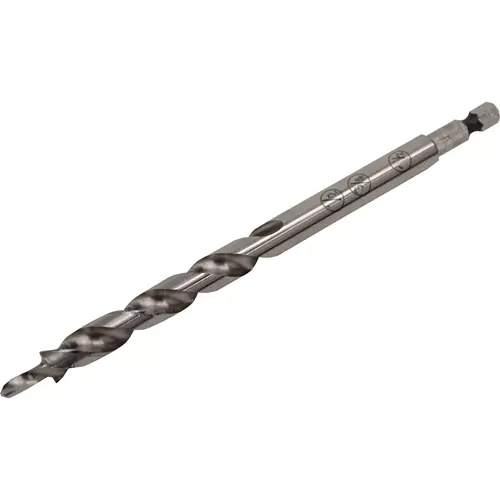 The Easy-Set Pocket-Hole Drill Bit is the same 3/8"-diameter stepped bit that comes with Kreg® 300-Series Pocket-Hole Jigs. If you have a worn bit, or if you want to add another bit to your pocket-hole tool collection, this is the perfect choice. This bit works with materials from 1/2" to 1-1/2" thick, and features engraved markings for 1/2", 3/4", and 1-1/2" materials to match up with the Easy-Set Stop Collar. A 1/4" hex shank fits standard quick-change chucks. Compatible with all Kreg Pocket-Hole Jigs.