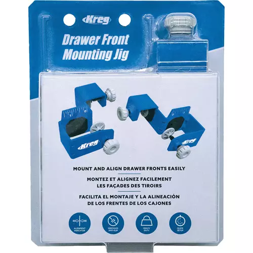 The Kreg® Drawer Front Mounting Tool frees up your hands by holding pieces in place as you work. The thick steel design features large clamp pads, GripMaxx anti-slip surface, and ribbed corners to minimize flex and maintain project stability.