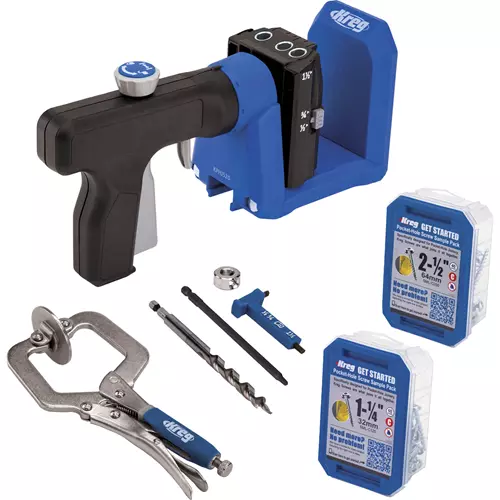 Includes: Pocket-Hole Jig 520PRO Easy-Set Drill Bit 6" #2 Driver Bit Easy-Set Stop Collar Hex Wrench 1 Downloadable plan Kreg Classic 2" Face Clamp 100 Kreg Pocket-Hole Screws
