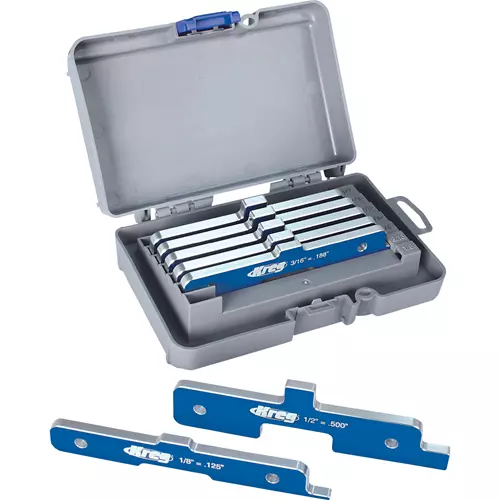 Whether you're working on a table saw, router table, or shaper, setting your tool to the precise height necessary is absolutely essential. The exclusive three-gauge design of the Precision Setup Bars makes them perfect for a wide variety of applications. The concave step on the bottom of each setup bar straddles your router bit or saw blade to allow for precise height adjustment. The step on the top edge of each setup bar acts as a gauge to test the depth of your completed cuts. The step on the end of each setup bar can be used to set the distance from a tablesaw blade to the fence, or a router bit to the fence.