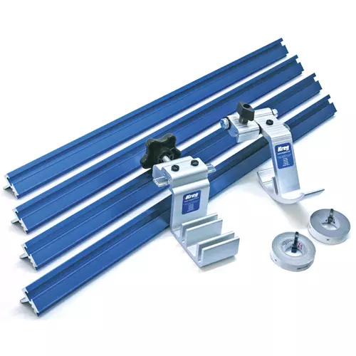 Take the guesswork—and your tape measure and pencil—out of cutting wood to length. Our Precision Trak and Stop Kit allows you to turn a miter saw into a precise cutting system. Simply position the stop at the dimensions you'd like to cut using the precision lens cursor, place the board against the stop, and cut to that exact length every time. You build the support wings out of plywood (or another sheet material), and then add the Trak. Outfitting your saw to cut perfectly-sized workpieces couldn’t be simpler!
