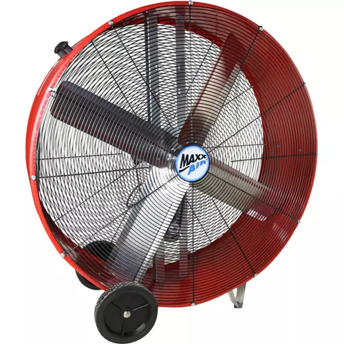 The MaxxAir 2-Speed Portable Drum Fan is a big air mover. This fan is ideal for moving large volumes of hot air quickly and efficiently to keep people and machines cooled off. This fan is useful indoors, on the factory floor, in a warehouse or in a barn with livestock where high-velocity air movement is needed. This fan is belt-driven for quieter operation and longevity and has a rugged, 22-gauge steel powder-coated housing for durability. The grille is OSHA compliant, rust resistant and powder-coated.