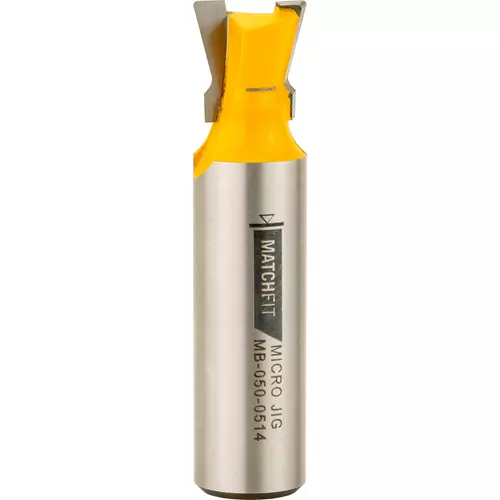 The MATCHFIT Dovetail Router Bit makes the MATCHFIT system faster and easier to use than ever before. It is designed especially for the MATCHFIT Dovetail Clamps(T28535) and dovetail hardware. Its' unique design automatically rounds over the sharp top shoulders creating incredibly clean dovetail grooves and virtually eliminating the need for sanding.