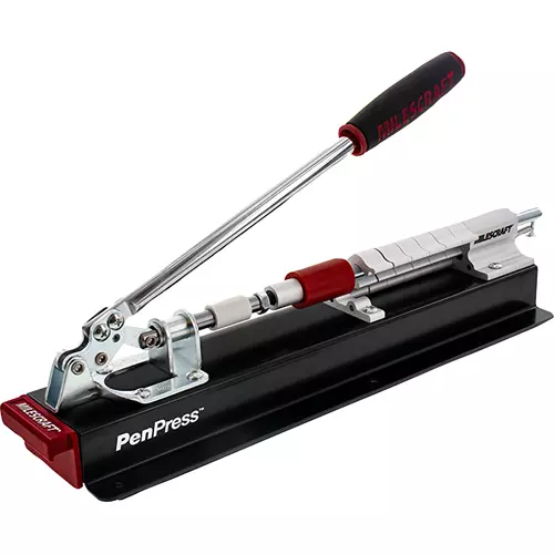 Simplify pen assembly with the Milescraft PenPress. This is the ideal tool for pressing pen crafting components and other turned projects together in a quick and simple fashion. The durable design keeps parts in horizontal alignment while pressure is applied. The spring-loaded slider can be easily adjusted for different component lengths. The steel handle and pivot deliver up to 300 pounds of force to ensure solid fitting pen pieces.