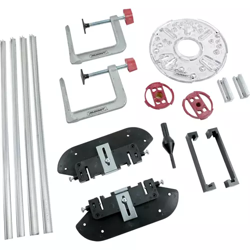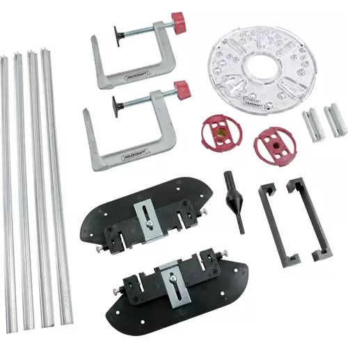 Create custom wood-engraved signs with the SignPro. This kit includes two sets of letter and number templates in both 1-1/2" and 2-1/2" sizes, along with additional copies of A, E, and I. The templates fit into the 36" adjustable clamping system without having to make any measurements - just affix the templates and start routing for uniformly spaced letters and numbers! With the 7" TurnLock base plate able to fit most popular routers, the bushing exchange is tool-free, hardware-free, and takes only seconds. The four 18" rails lay flat on the work surface so there's no bowing - just add your router and wood and you're ready to make beautiful, professional-looking signs!