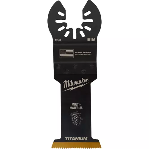 Milwaukee's Universal Fit OPEN-LOK™ Titanium Enhanced Bi-Metal Multi-Material Oscillating Multi-Tool Blades are made from premium high-speed steel. These bi-metal blades are ideal for cuts in wood, nails, PVC, and drywall. The MILWAUKEE® bi-metal multi-tool blades are enhanced with a titanium coating to deliver longer life and faster cuts than the previous generation. These oscillating multi-tool blades are designed and made in the USA with global materials.