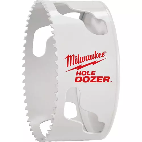 The Milwaukee® Hole Dozer™ Hole Saw features Rip Guard™, the strongest tooth form in the industry, backed by the Rip Guard™ limited lifetime tooth break warranty. Each tooth is built with more steel behind the cutting edge for added strength. The Rip Guard™ warranty on tooth breaks is a first for the hole saw industry. The added tooth strength along with 8% cobalt give added life to the teeth, allowing for increased productivity on the jobsite, as well as continued hole quality. The Hole Dozer™ includes Plug Jack™, an all access slot design that allows for full access during plug removal. The Plug Jack™ gives access lower into the cup for thick material and higher towards the teeth for thin material. With multiple positions to apply leverage and better plug access, Plug Jack™ increases productivity and eliminates wasted downtime between holes.