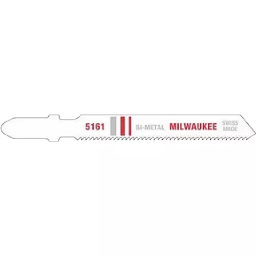 Get professional-grade performance with the Milwaukee® 5-1/4" 14 TPI High-Speed Steel Jig Saw Blade (5-Pack). These blades are designed and built to handle heavy-duty jobs. With Milwaukee’s attention to blade material, tooth shape and sharpness, the jig saw blades produce clean, fast cuts in metal over 1/4" thick. This blade has a universal tang and fits Milwaukee jig saw model 6256-6 and other popular brands.
