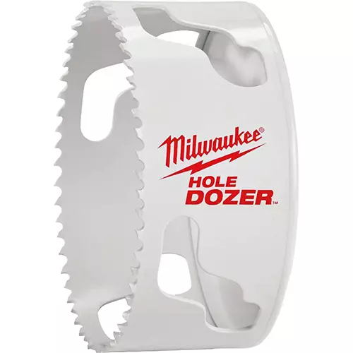 The Milwaukee® Hole Dozer™ Hole Saw features Rip Guard™, the strongest tooth form in the industry, backed by the Rip Guard™ limited lifetime tooth break warranty. Each tooth is built with more steel behind the cutting edge for added strength. The Rip Guard™ warranty on tooth breaks is a first for the hole saw industry. The added tooth strength along with 8% cobalt give added life to the teeth, allowing for increased productivity on the jobsite, as well as continued hole quality. The Hole Dozer™ includes Plug Jack™, an all access slot design that allows for full access during plug removal. The Plug Jack™ gives access lower into the cup for thick material and higher towards the teeth for thin material. With multiple positions to apply leverage and better plug access, Plug Jack™ increases productivity and eliminates wasted downtime between holes.