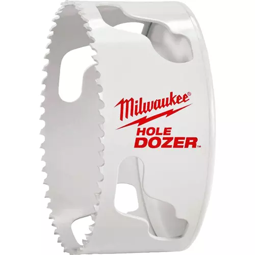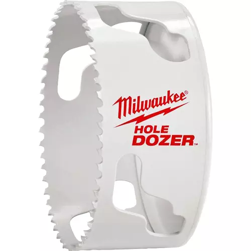The Milwaukee® Hole Dozer™ Hole Saw features Rip Guard™, the strongest tooth form in the industry, backed by the Rip Guard™ limited lifetime tooth break warranty. Each tooth is built with more steel behind the cutting edge for added strength. The Rip Guard™ warranty on tooth breaks is a first for the hole saw industry. The added tooth strength along with 8% cobalt give added life to the teeth, allowing for increased productivity on the jobsite, as well as continued hole quality. The Hole Dozer™ includes Plug Jack™, an all access slot design that allows for full access during plug removal. The Plug Jack™ gives access lower into the cup for thick material and higher towards the teeth for thin material. With multiple positions to apply leverage and better plug access, Plug Jack™ increases productivity and eliminates wasted downtime between holes.