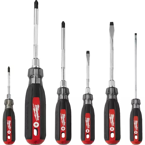 Featuring anti-peel handle design, hardened tips & forged shanks the Milwaukee® 6 Piece Cushion Grip Screwdriver Set provides professional grade solutions and durability to the user. The tactile identification, a new-to-world innovation allows users to accurately select the correct driver without looking. The wrench-ready bolster and precision knurling offers users the features needed to increase efficiency and effectiveness.