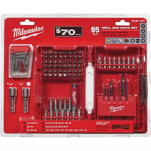 The Milwaukee 95-Piece Drill and Drive Bit Set helps provide solutions for multiple drilling and fastening applications. The drill bits are suitable for use with drilling metal, wood and plastic. The driving bits are intended for use in quick change projects.