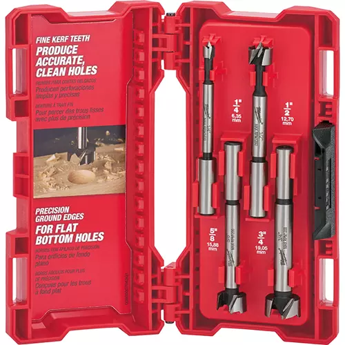 Milwaukee Forstner bits feature precision-ground fine kerf cutters for clean, accurate holes and a polished surface finish that creates flat-bottom holes.
