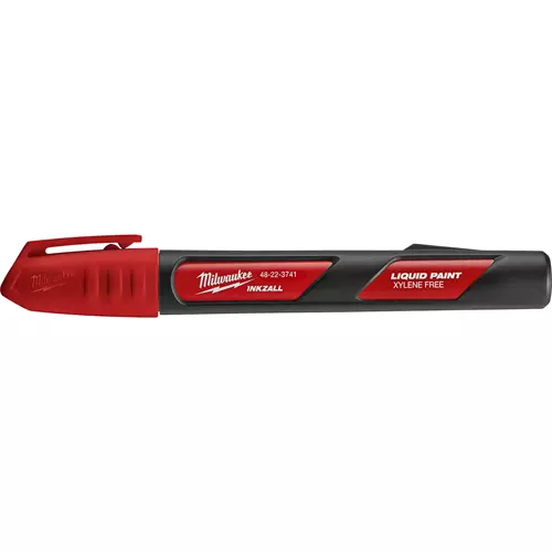 Milwaukee INKZALL Liquid Paint Markers were designed from the ground up to provide users with the best performance on tough jobsite surfaces. All Liquid Paint Markers feature a durable acrylic nib that can write on the dirtiest, hottest and roughest of surfaces. Proprietary paint developed specifically for INKZALL can mark on surfaces up to 300F and dries in 10 seconds. For the most demanding environmental conditions, these markers provide the longest lasting marks that are both water and UV resistant. Single pen, red paint.
