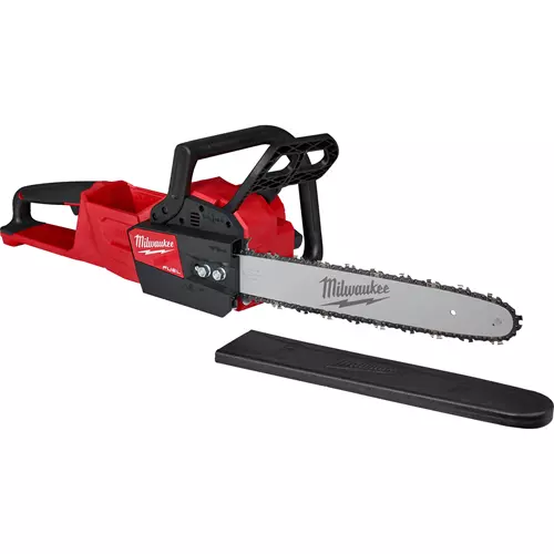 The Milwaukee® M18 Fuel™ 16" Chainsaw cuts faster than gas, and delivers the power to cut hardwoods and up to 150 cuts per charge. The unit is designed to meet the performance, durability and ergonomic needs of professional landscape maintenance, power utility, and the installed M18 user.