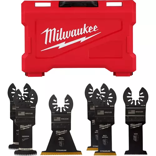 Milwaukee's Universal Fit OPEN-LOK™ 6-Piece Oscillating Multi-Tool General Purpose Blade Kit provides you with an assortment of blades for cutting hardwood, wood & nails, wood, PVC, and drywall. The included Titanium Enhanced Bi-Metal Blades use premium high-speed steel and last up to 15X longer than standard high carbon steel (HCS) blades. The bi-metal blade is ideal for smooth cuts in wood & nails, PVC, and drywall. The Triple Ground Japanese Tooth Blades deliver up to 2X faster cuts than the previous Milwaukee HCS blade and features a PRO-CURVE™ cutting edge for greater control. Ideal for fast, clean cuts in hardwood and can also be used in other woods, PVC, and drywall. The MILWAUKEE® oscillating wood blade has been designed with precision ground aggressive teeth for fast cuts in wood, drywall, and PVC. This oscillating tool blade variety pack is designed and made in the USA with global materials and includes a storage case.