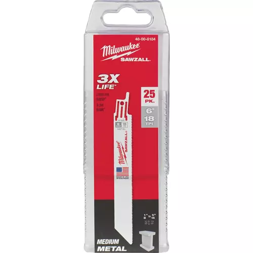 Thin Kerf metal-cutting blades with the Double Duty Upgrade™ feature a tooth form that is optimized for the longest life and increased speed. Tough Neck™ is engineered to protect against tang breakage and delivers the strongest SAWZALL® blade tang on the market. Maintaining a short profile and thin body, these blades are ideal for making fast, flexible cuts. For cutting metal 1/8" thru 3/16", conduit, tubing, channels, and pipe.