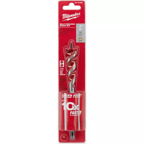 Milwaukee® 1/2" x 6" Speed Feed Wood Bits let you drill up to 10X faster than flat boring bits. These self-feeding wood bits feature double wing spurs for drilling fast holes in clean wood. The feed screw and dual cutting edges permit fast cutting of clean holes that are ideal for feeding wire or bolts.