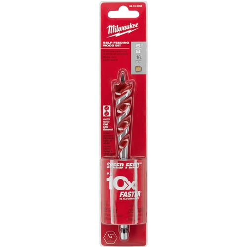 Milwaukee® 1/2" x 6" Speed Feed Wood Bits let you drill up to 10X faster than flat boring bits. These self-feeding wood bits feature double wing spurs for drilling fast holes in clean wood. The feed screw and dual cutting edges permit fast cutting of clean holes that are ideal for feeding wire or bolts.