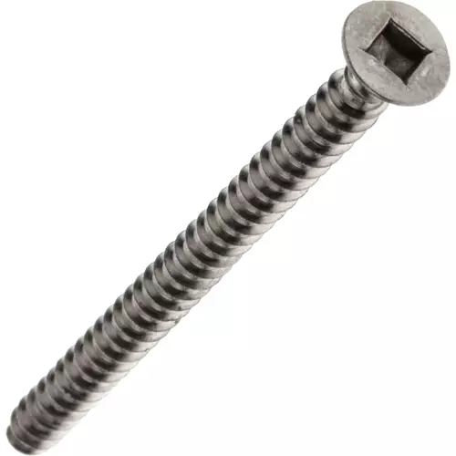 Type: Sheet Metal Screw Application: for use with sheet metal Material: 18-8 Stainless Steel Size: #8 x 2-1/2" Length: 2-1/2" Thread Type: Type A Thread Size: 15 TPI Head Width: 0.297" Head Height: 0.030" Head Type: Flat Head Head Color: Silver Finish: Stainless Steel Driver Size: #1 Drive Type: Square Drive Quantity: 100