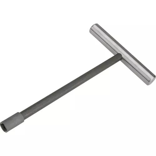 This T-Handle features 1/4"-28 threads which are directly compatible with threaded Pacific Tool & Gauge Reamers. It comes with a removable 3/8" square drive socket which fits any Chamber Reamer, Throat Reamer, Neck Reamer, or Throat and Neck Reamer with a 3/8" square drive shank. The T-Handle is 9" (~230mm) long, and allows the Reamer to be used in spaces where a standard tap handle will not reach. The 3/8" socket of this T-Handle features 2 set screws to keep it positively attached to the Reamer.
