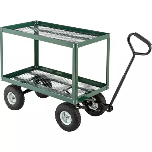This ruggedly constructed cart places a wealth of items within easy reach on its top shelf, while the lower shelf provides an excellent storage location for spares.