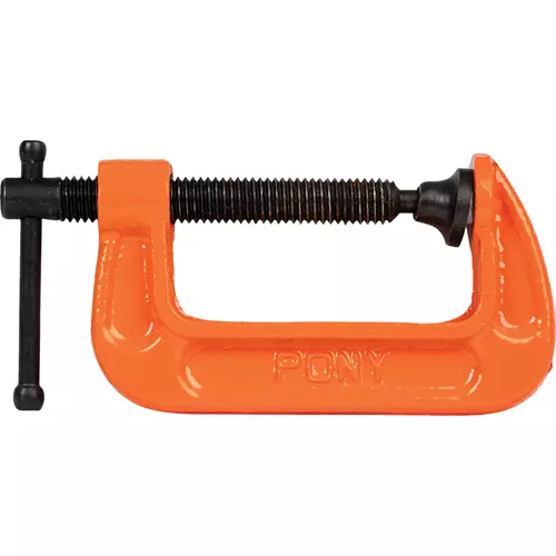 This smaller, lightweight carriage C-clamp is designed and manufactured for light-duty industrial service. Bright-plated steel is used throughout, as is zinc plating for the casting, screw, handle, and swivel. 2" max opening.
