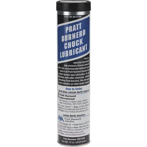This specially formulated high pressure Chuck Lubricant is the recommended lubricant for all Pratt Burnerd chucks and other brand chucks that require grease type lubrication. Dramatically improves chuck jaw forces, withstands pressure up to 500,000 PSI, contains rust and oxidation inhibitors and resists centrifugal force.