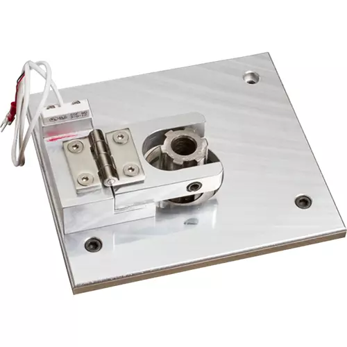The Spindle Brake provides a convenient method of locking the spindle freeing both hands to complete a tool change, which improves productivity while making tool changes easier, faster, and safer. An electro-magnetic interlock disables power to the motor with the fork of the Spindle Brake in the engaged position. The integral flip-style locking fork locks the mill's spindle when engaged and does not require a separate locking device to be mounted and removed from the mill, allowing for one-handed loosening and tightening of tool-less chucks. Made here in the USA, the block and fork are made of 6061-T6511 Aluminum and the plate itself is made of ATP5 tooling plate. Approximate size is 6.75" x 6" x 2", compatible with the Grizzly G0720 and G0720R mills.
