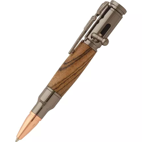 Made with the same best selling style and components as the original Bolt Action Pens, this mini style pen will make a great gift for any gun enthusiast. It features authentic 30 caliber bullet styling and realistic Bolt Action handle that securely advances and retracts the mini-refill. At only 4" long, this pen will quickly become a favorite for your pocket or purse. Pen blank and bushing set not included. See our wide selection of blanks to complement this pen: T28720-T28733 & T28776-T28779