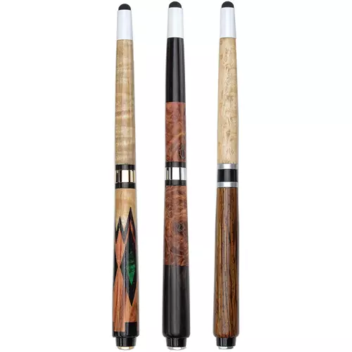 Save with this starter set! You get one of each Pool Cue Rollerball Pen Kit in 24kt Gold Band, Black Band and Chrome Band, plus the bushings. Create an awesome, handy gift for any pool player. Use it to keep score during matches and as a show-stopping conversation piece. Designed to look like a real pool cue with the same components as a genuine cue. The tip of the pen is an actual stylus you can use on smartphones and tablets. Get creative with your material by using one of our pool cue blanks or wood with contrasting grains and colors for an authentic effect. Features a smooth writing rollerball refill.