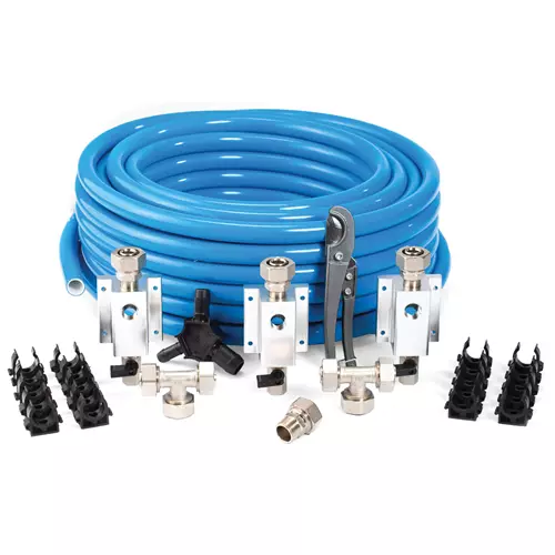 Maxline's multilayer construction can be easily bent by hand and maintain its desired shape, giving a professional appearance with no tubing sag. 100 ft rolls allow for faster installation times, with fewer joints. Its smooth interior walls will never build up scale or rust making an efficient air system. Recommended for larger buildings and tubing lengths up to 150' from the air compressor.