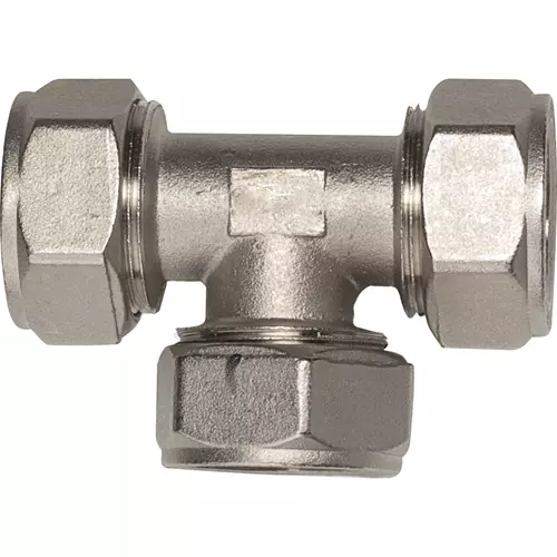 The RapidAir 3/4 in. MaxLine Tee Fitting is designed to make installation fast and easy. 3/4in. MaxLine fittings are designed for high-demand air tool users and longer air line runs in large buildings. Compression style with double O-ring. Nickel-plated brass. Reusable.Nickel plated brass Double o-ring design Split ring allows disassembly No expensive tools required Adapt to existing systems with an NPT pipe fitting.