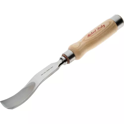 Created for sculptors who work in wood, these tools feature the most widely used profiles. Massively proportioned, yet beautifully balanced, all chisels are fitted with heavy-duty double-hooped ash handles and shock-absorbing leather washers.