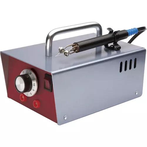 The Peter Child Artist's Pyrography Machine is widely regarded as the machine of choice by many professionals. Powerful enough to create dense textures and patterns, its slim, light, and comfortable to use pen design also delivers the perfect balance for the finest detail work - making it an ideal choice for the novice as well. As you would expect from a machine manufactured by Robert Sorby, the build quality and attention to detail is of the highest standard.Each pyrography machine contains a pen, a meter length of 25 standard wire gauge to make your own points, six spare nickel chromium nibs (five standard points in 25 SWG and one spoon point in heavier 24 SWG), and a handy 12 page manual full of ideas.