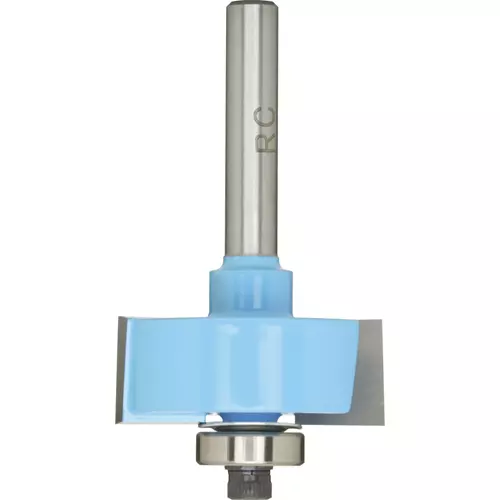 A versatile rabbeting router bit for making precise woodworking straight cuts and grooves.