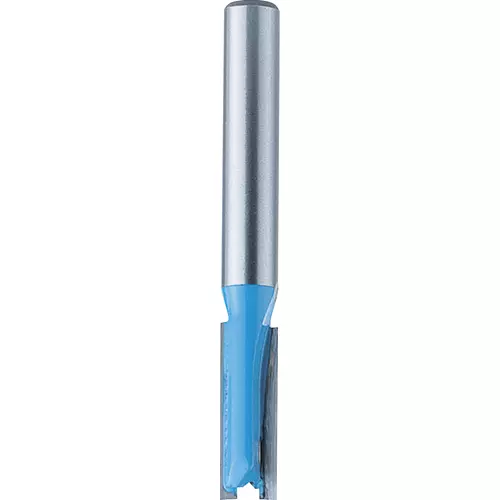 A shear cut double-fluted router bit for smoother cuts and grooves.
